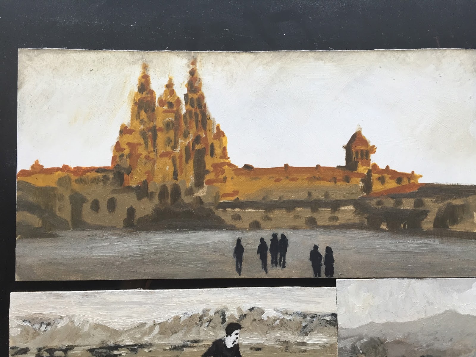 Next, my brother's birthday is just before Christmas, and I always feel like his birthday gets brushed over for the holidays. So I wanted to do something good for his birthday this year. This is a nice, big piece that I started many years ago, but never got past the underpainting. I called this one "Engel Onder De Windmolens" (translated from the Dutch: Angel Among the Windmills).